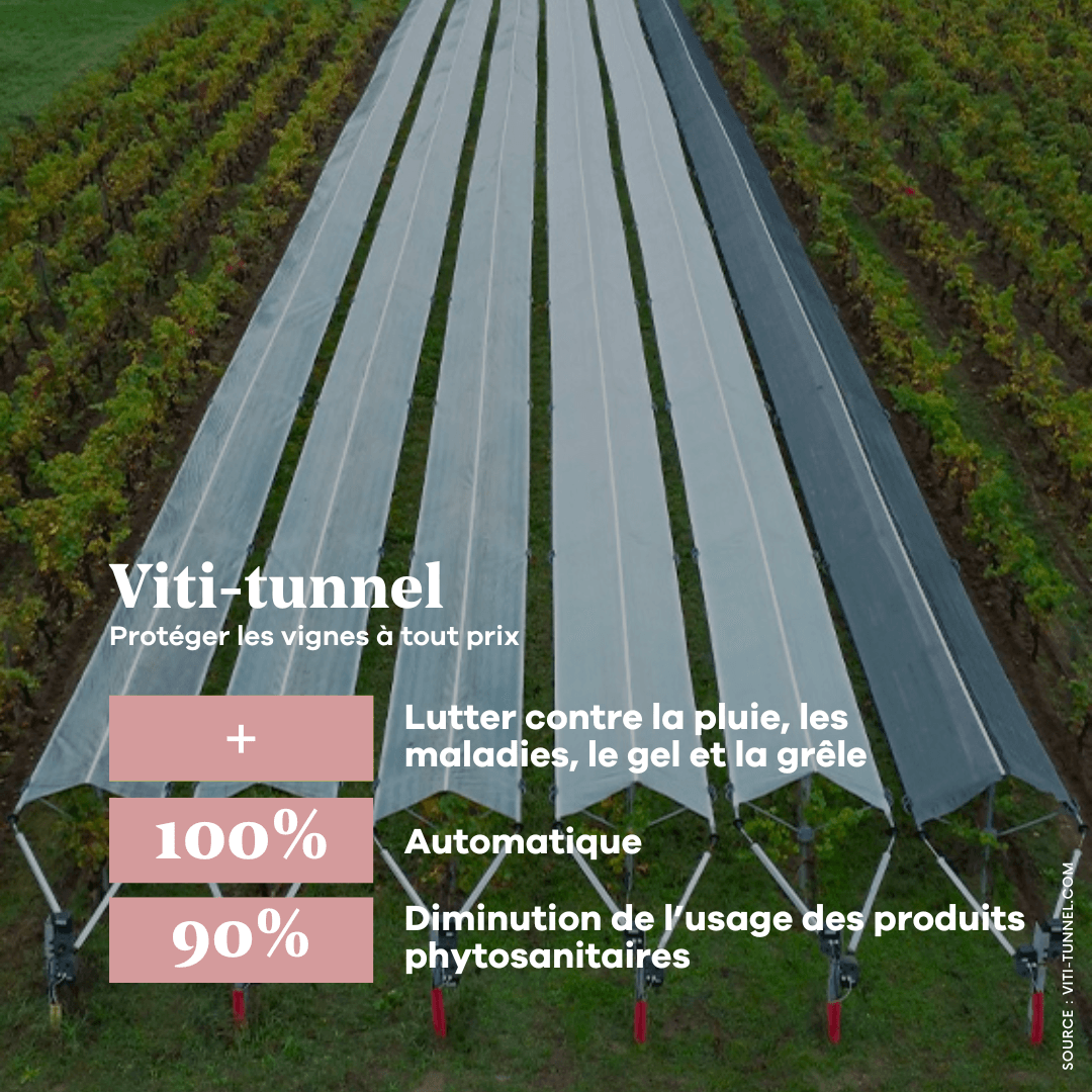 Après cinq années d’expérimentation sur dix sites, Viti-Tunnel a prouvé son efficacité ! À tel point qu’une commercialisation de ce produit est prévue cette année. Devenez le prochain vigneron à tenter l’expérience !